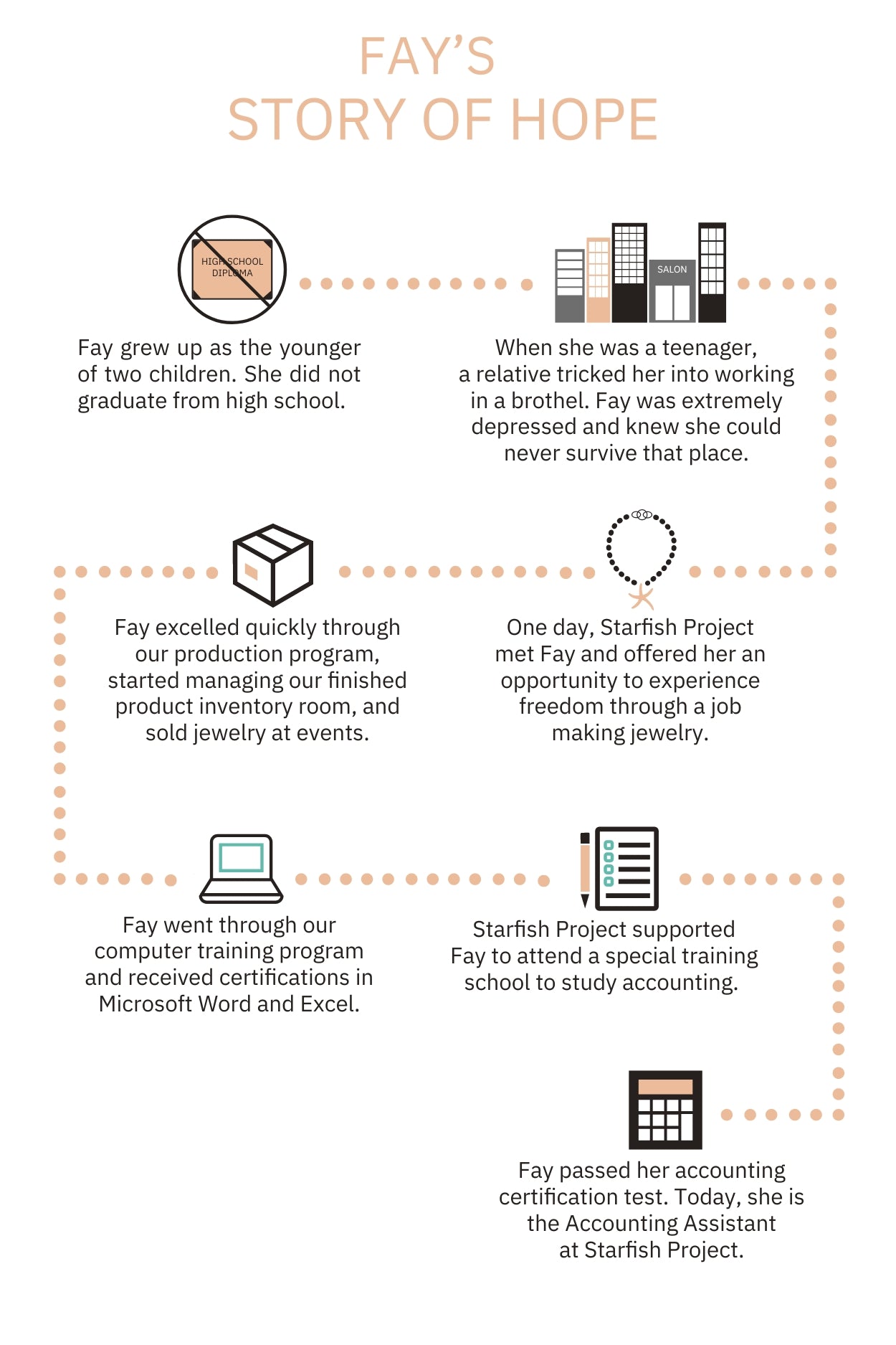 From sourcing to design, photography, management, and this website, survivors of exploitation are involved in leading every aspect of Starfish Project.