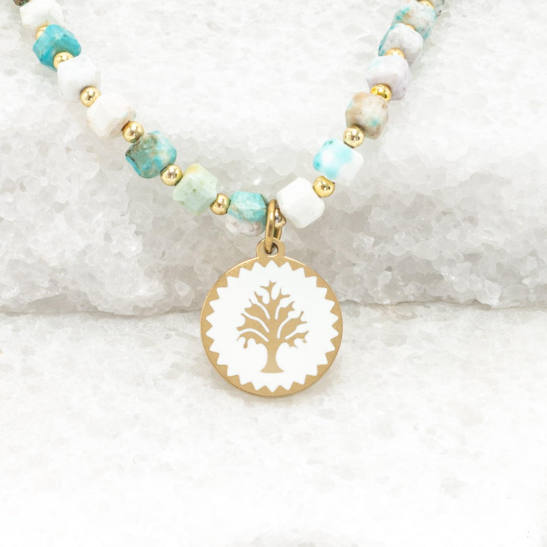 Engravable Round Pendant on Seeds of Hope Chain in Mint
