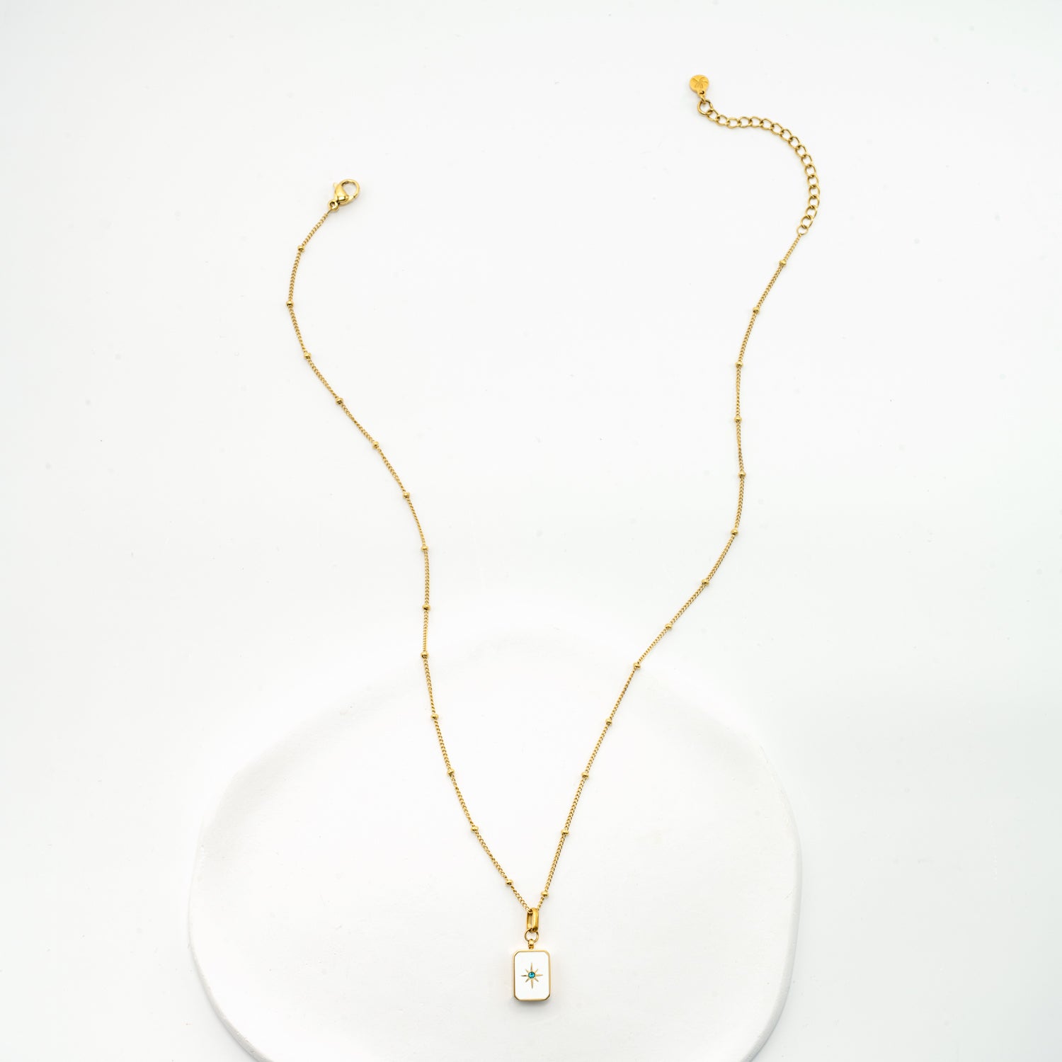 Materials: 14k gold plated stainless steel with enamel and zircon stone necklace