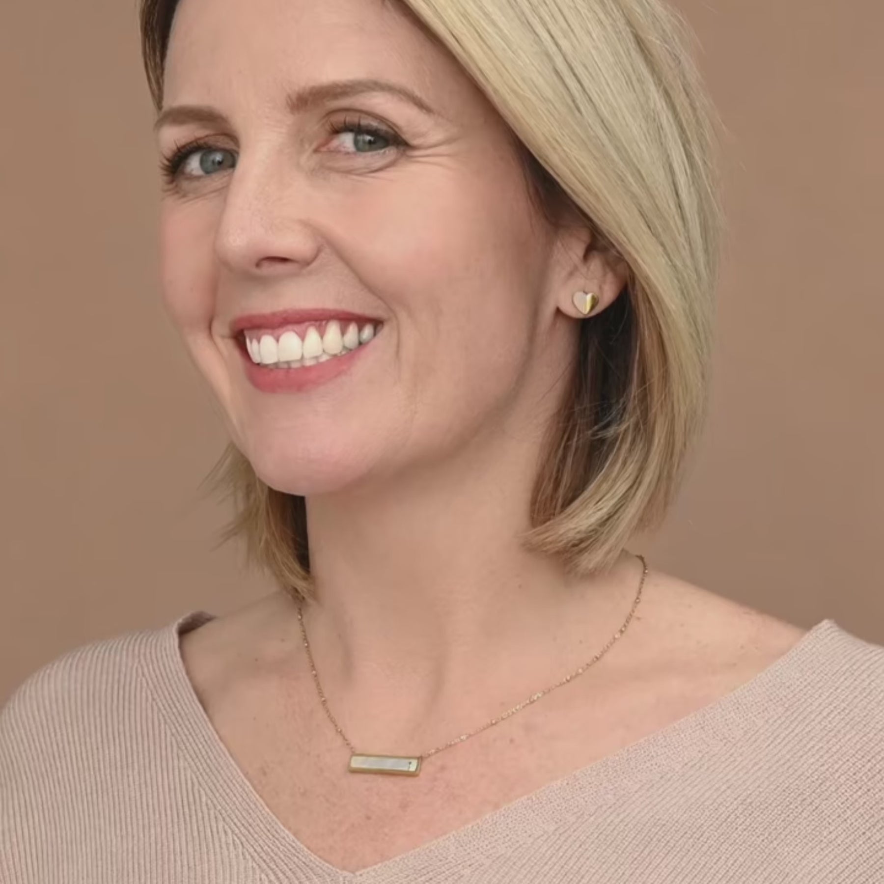Materials: 14k gold plated stainless steel with mother of pearl necklace