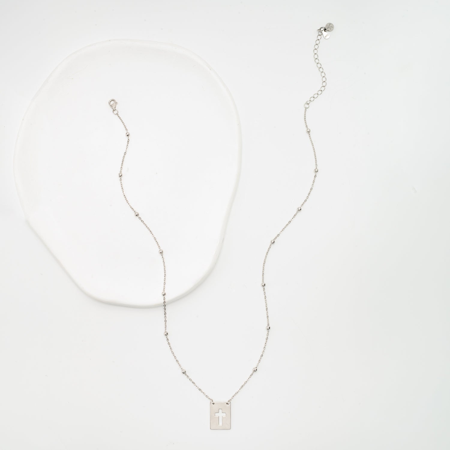 Crafted in brilliant sterling silver, the Sanctuary Necklace features a modern rectangular pendant with a cross cutout—symbolizing light shining through. Gift her a piece that reflects her faith and compassion, knowing your purchase helps create sanctuary for women rebuilding sustainable lives of freedom.
