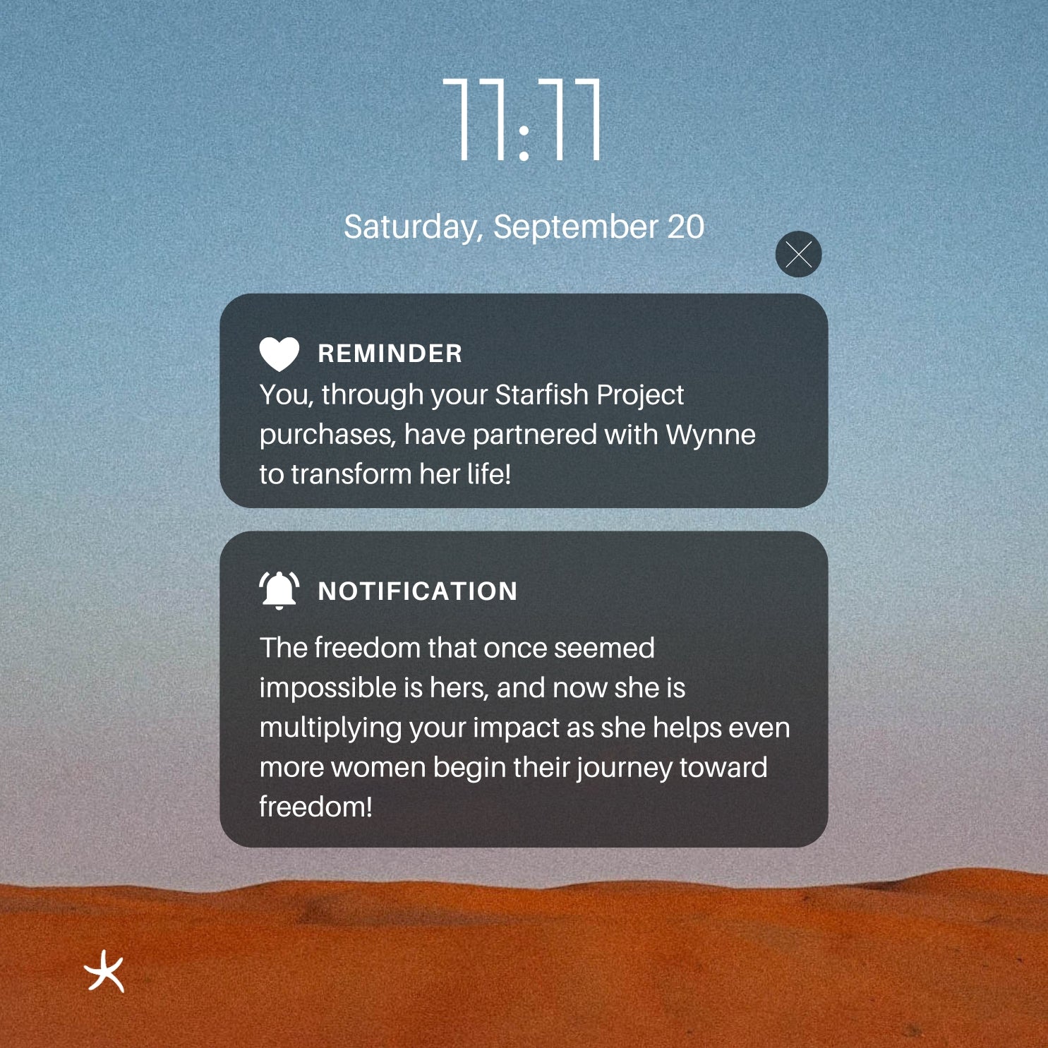 You, through your Starfish Project purchases, have partnered with Wynne to transform her life! The freedom that once seemed impossible is hers, and now she is multiplying your impact as she helps even more women begin their journey toward freedom!