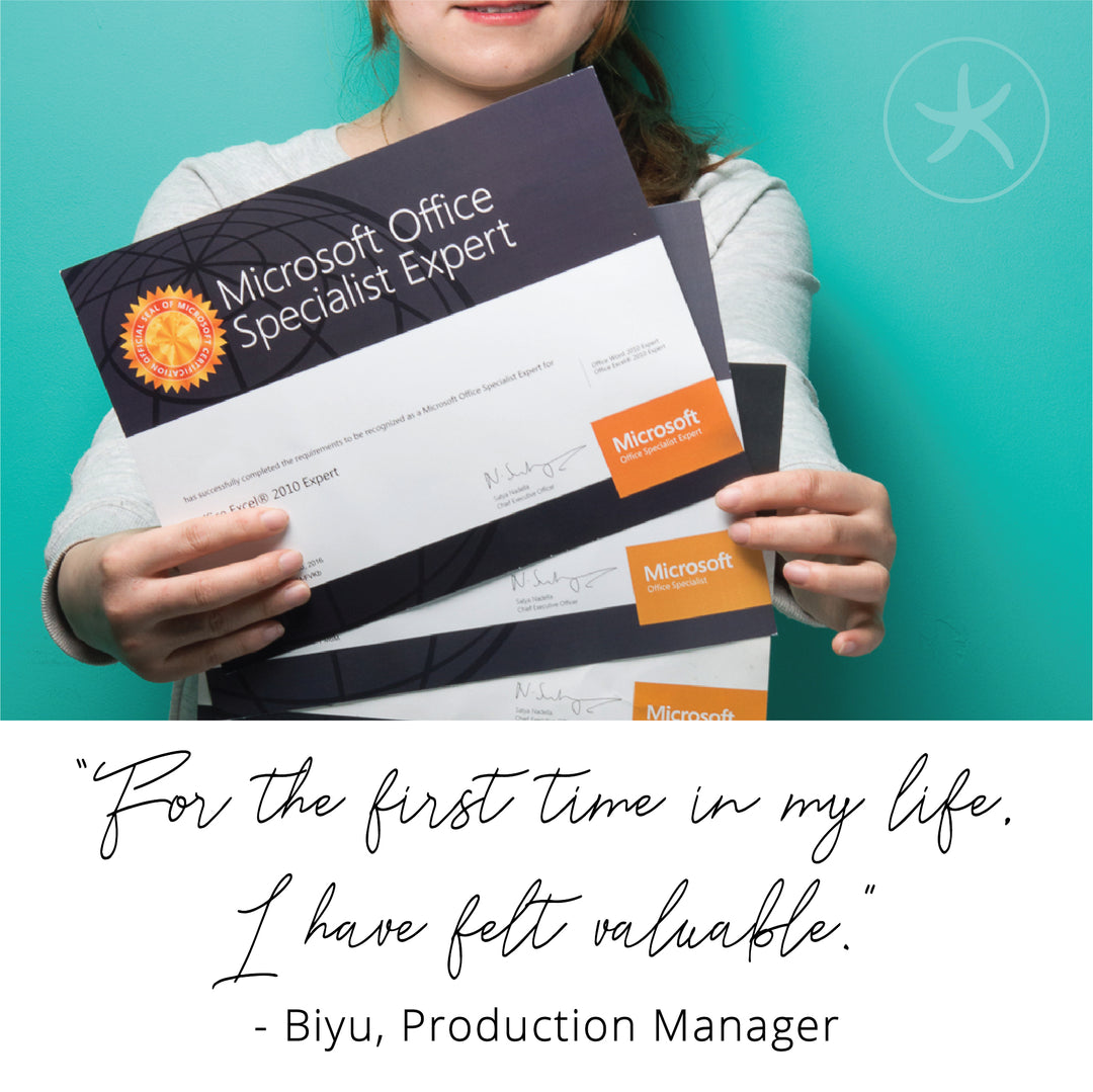 Since 2006, over 180 women have escaped exploitation to be part of Starfish Project. Each one of them is now developing a life-changing career, in everything from sourcing to photography. Some have even gone on to run their own businesses! Here are some of the stories of these amazing women.